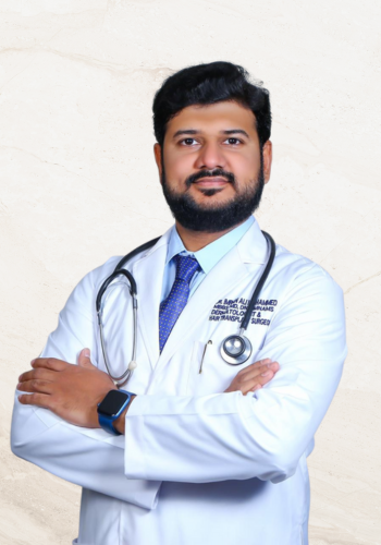 He specializes in the diagnosis and treatment of skin disorders, hair loss conditions, cosmetic dermatology concerns, and advanced hair transplant procedures. His areas of expertise include acne and acne scars, pigmentation disorders, eczema, psoriasis, fungal infections, vitiligo, hair fall treatment, PRP therapy, beard & scalp hair transplantation, and overall skin rejuvenation.
